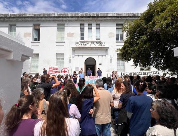 La conversación avanzaba y, a medida que se profundizaba el relato, la dimensión del conflicto empezaba a tomar forma concreta. Dentro del Hospital de Niños Víctor J. Vilela, explicaban, no resultaba sencillo precisar una cifra exacta de trabajadores, pero sí podían dar una referencia clara: solo en esa primera instancia de organización habían logrado reunir a unas 800. Ese número, sugerían, servía también para dimensionar algo más amplio: el peso de la salud pública en Rosario.