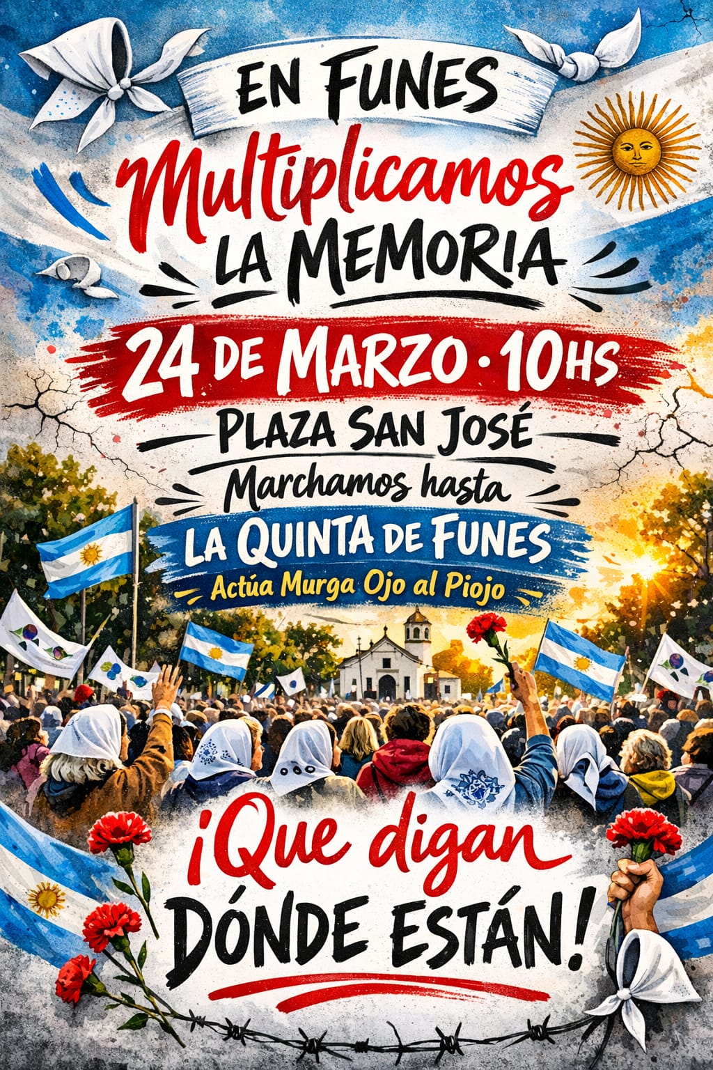 Este martes 24 de Marzo se cumplen 50 años del último golpe cívico-militar. Como cada año, la comunidad funense marcha por Memoria, Verdad y Justicia. No olvidamos, no perdonamos. Por más democracia, por los 30.000 desaparecidos, por los hijos e hijas, las madres, las abuelas y los nietos y nietas.